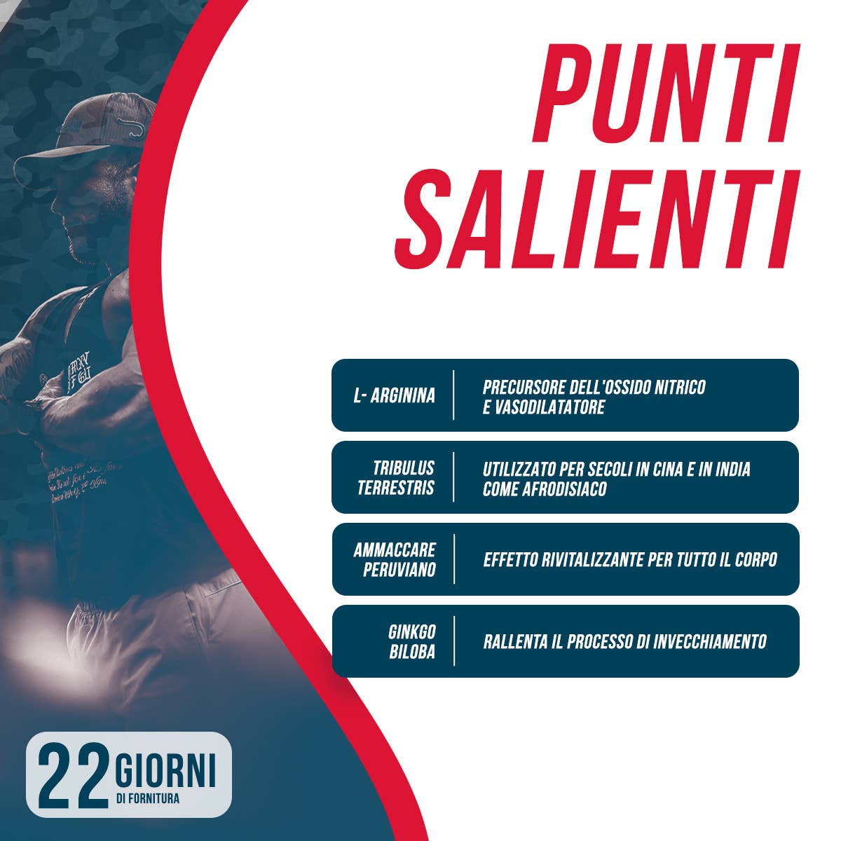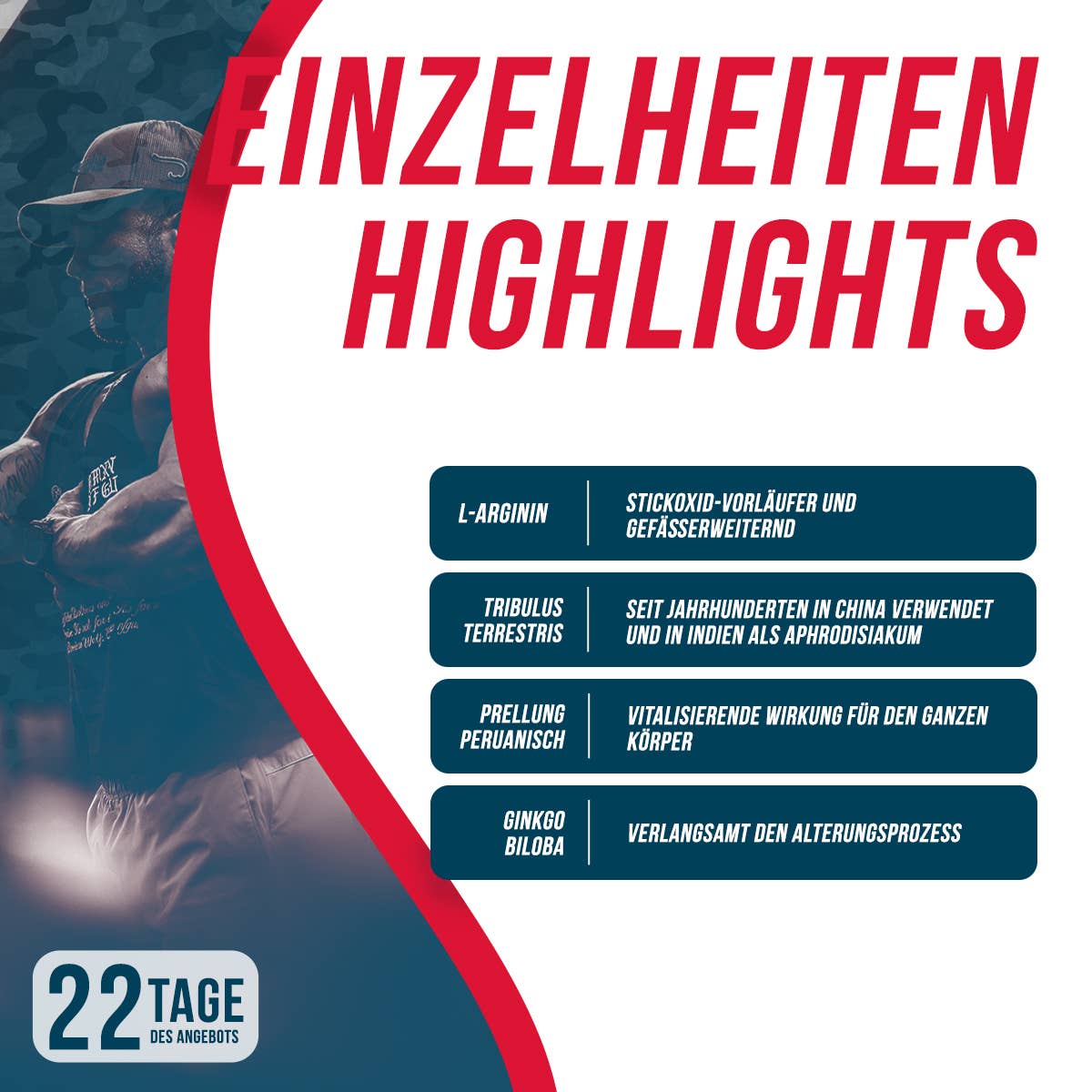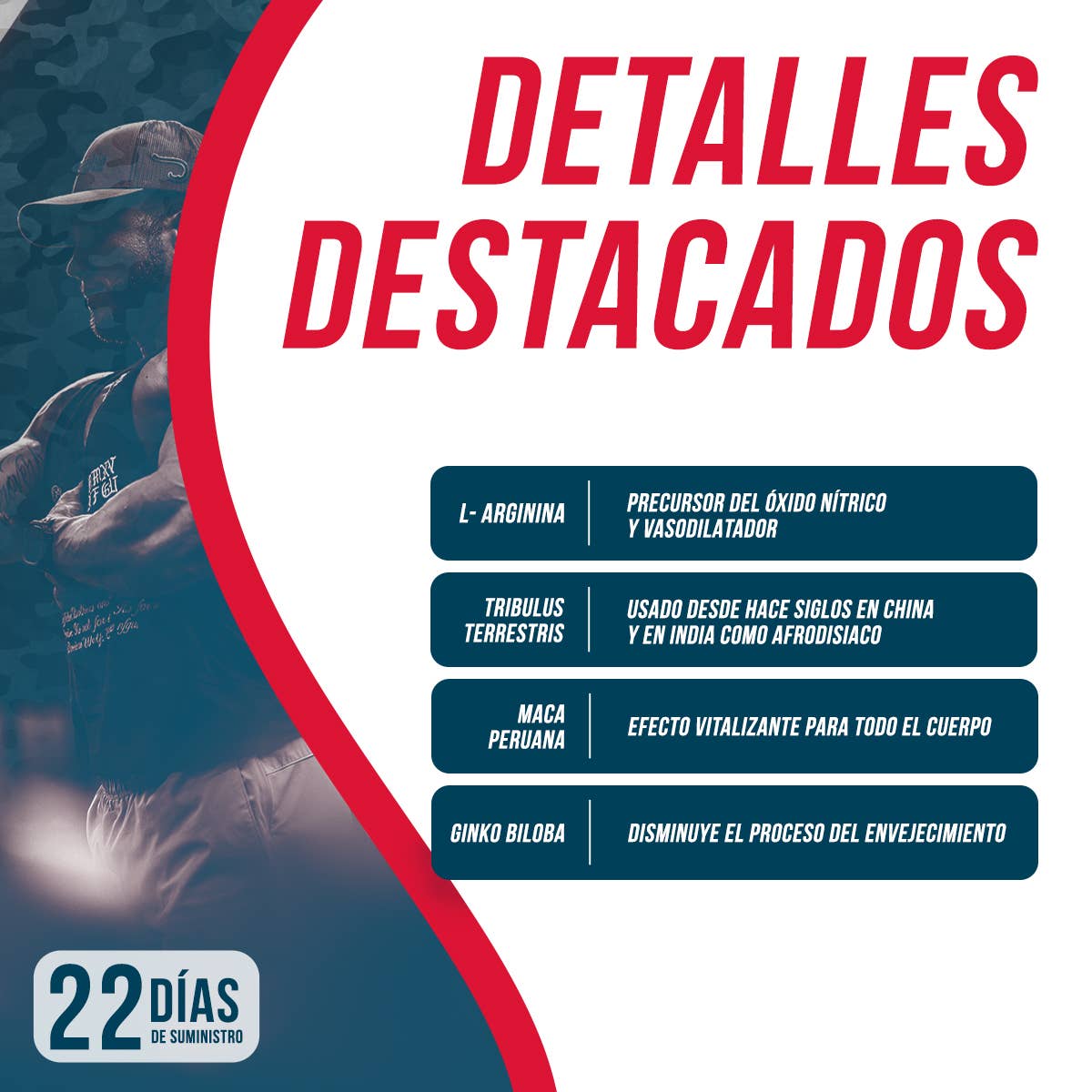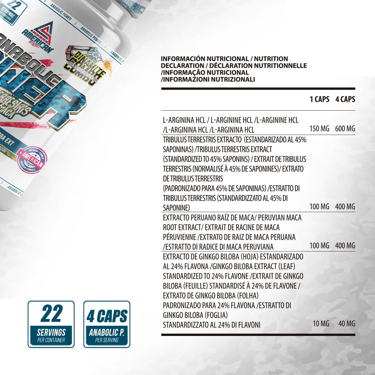 Tento prírodný anabolický doplnok spolu so svojimi hormonálnymi zložkami, ako sú L-arginín, Tribulus terrestris, peruánska maca a ginkgo biloba, priamo podporuje rast a udržiavanie svalovej hmoty. Na základe potrieb vrcholových športovcov bola vybraná ideálna kombinácia surovín, vďaka čomu vznikol produkt vysokej kvality. Okrem toho dodáva energiu, zvyšuje vytrvalosť a pomáha predchádzať katabolizmu.